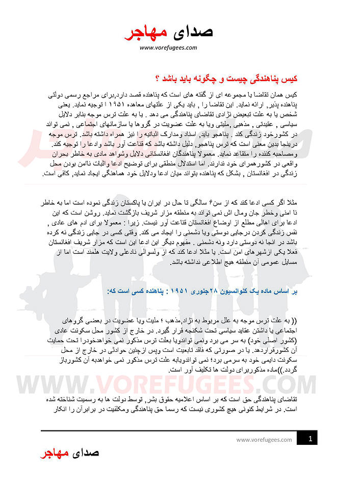 همه ما دوستاني داريم که يا در شرايط پيچيده پناهندگي قرار دارند و يا در شروع اين پروسه مي باشند و دقيقاً نمي دانند که از کجا بايد شروع کنند و به چه منبعي مي توانند اطمينان کنند. اين کتاب تمام اطلاعات لازم را از شروع تا پايان در اختيار افراد قرار مي دهد و با دارا بودن مثال هايي واقعي از انواع کيس هاي پناهندگي راه موفقيت در پروسه پناهندگي را با زباني شيوا بيان مي کند.